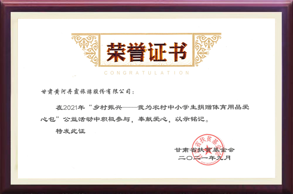 近日,甘肅省扶貧基金會發(fā)布2021年“鄉(xiāng)村振興——我為農(nóng)村中小學(xué)生捐贈體育用品包”公益活動表彰企業(yè)名單,廈門恒興集團旗下甘肅黃河丹霞旅游股份有限公司獲得表彰。