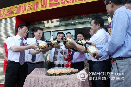 領(lǐng)導(dǎo)致辭后,廈門市領(lǐng)導(dǎo)徐模、陳昭揚(yáng)、葉重耕、翁云雷、許明耀、廈門大學(xué)黨委書記朱之文;原廈門市政協(xié)副主席陳維欽、思明區(qū)人民政府區(qū)長黃僑生與恒興集團(tuán)董事長柯希平等10名嘉賓共同為財(cái)富中心的落成剪彩。一聲汽笛鳴響,大堂LED屏幕中巨輪緩緩啟航,現(xiàn)場掌聲雷動(dòng),場面熱烈,象征著財(cái)富中心正式落成啟用 ——“財(cái)富匯聚、海西啟航”!緊接著,臺上各位嘉賓齊開香檳酒澆灌香檳塔,舉杯慶祝恒興集團(tuán)喬遷之喜!