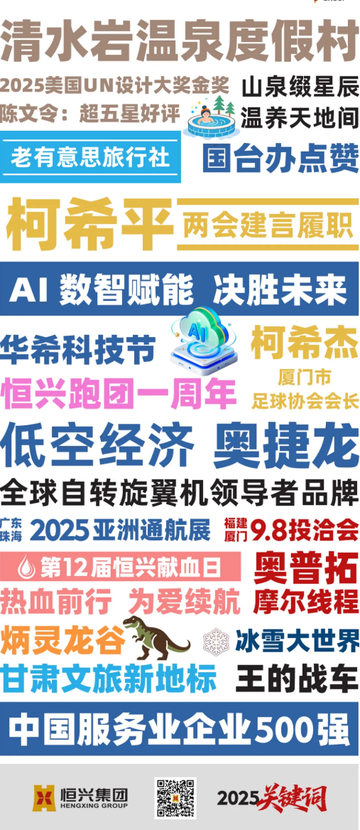 盛夏時(shí)節(jié),恒興的發(fā)展熱潮與氣溫同步攀升。清水巖溫泉度假村憑借獨(dú)特的自然稟賦與設(shè)計(jì)匠心,榮膺2025美國(guó)UN設(shè)計(jì)大獎(jiǎng)金獎(jiǎng)。藝術(shù)家陳文令盛贊其 “超五星” 體驗(yàn),《廈航》雜志的專題報(bào)道,讓 “山泉綴星辰,溫養(yǎng)天地間”的美譽(yù)傳遍八閩,讓這份美好飛向全國(guó)。